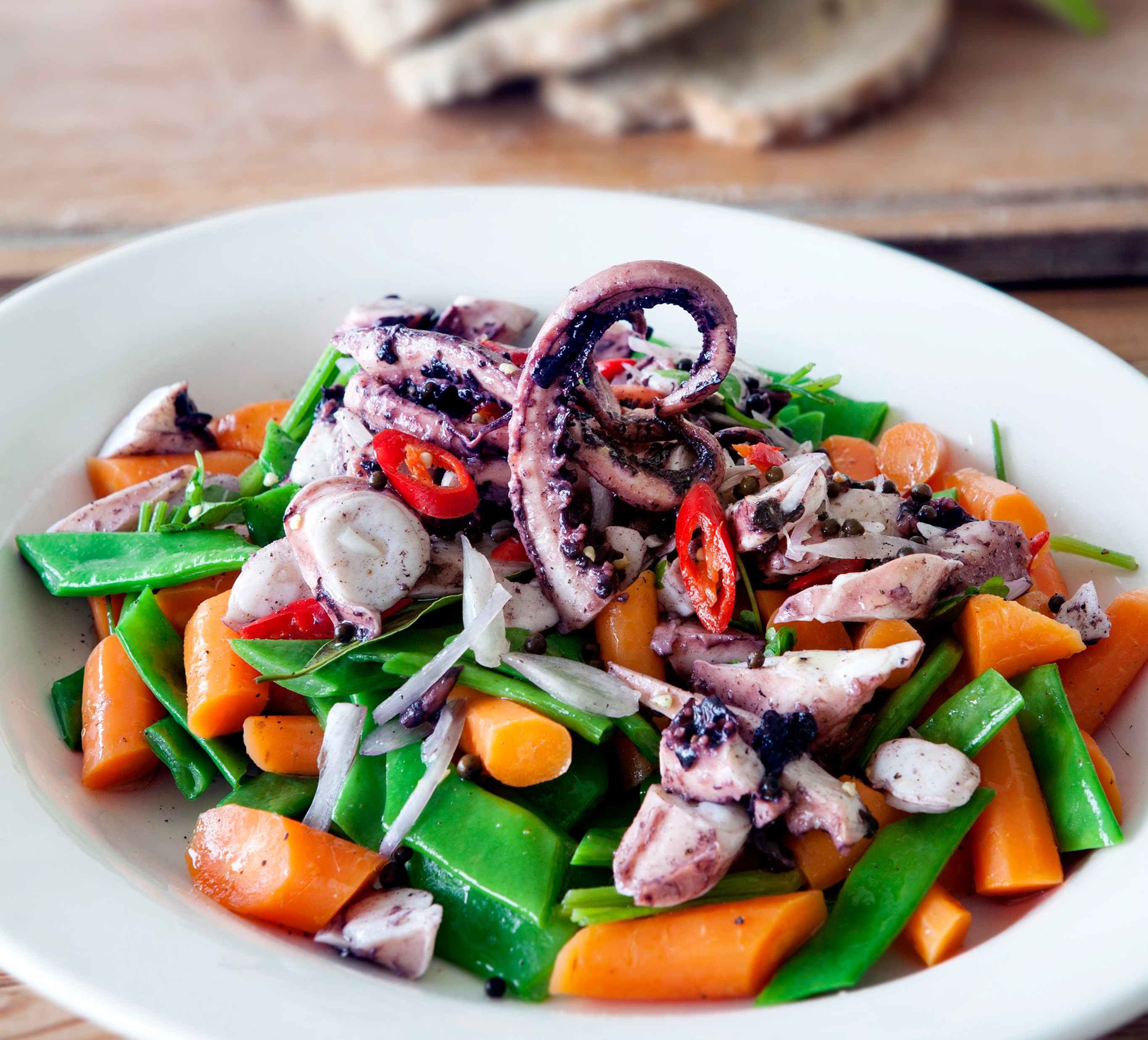 met hummus en chimichurri en gamba’s al piri-piri.